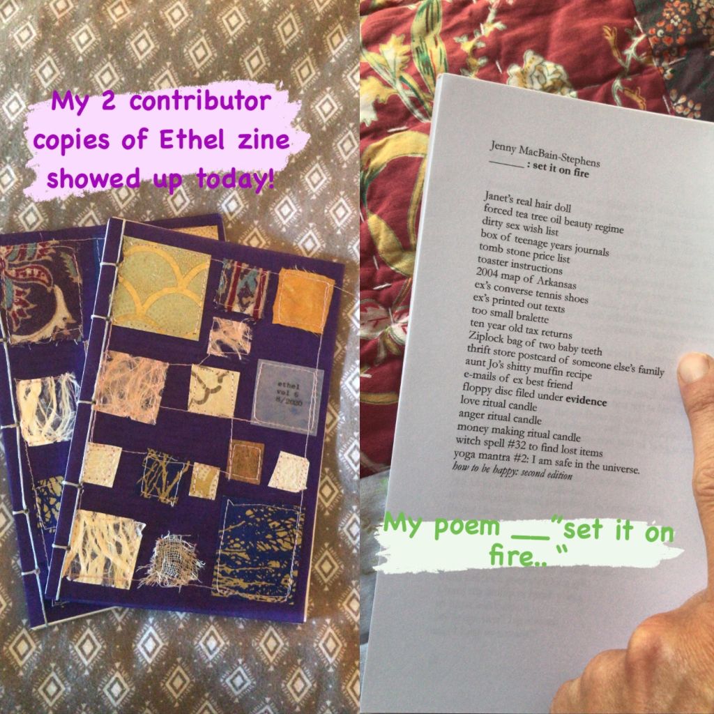 Thanks to Sara Lefsyk and Joanna Penn Cooper for my contributor copies of Ethel zine, volume 6. They are beautiful! I am excited for my mini chapbook to come out with Ethel Press next year: “Lying Travel Notes from the Desert.” #womenrunpress September 28, 2020September 28, 2020 ~ jennifermacbainstephens ~ Leave a comment